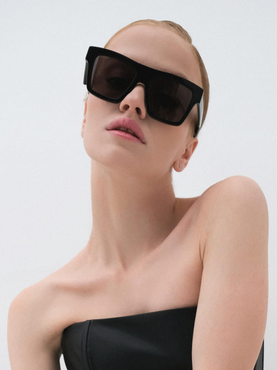 100% acetate frame. Rectangular design. Total UV protection factor with category 3 filter.